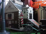 With doughnuts of all kinds, Dunkin' Donuts is the ideal place to indulge your sweet tooth. From crullers to cream-filled, Dunkin' Donuts has the right doughnut for you. They also serve doughnut holes and coffee. Inside, you'll find a friendly staff ready to serve you the perfect doughnut. You'll also find plenty of room to sit down and enjoy your doughnut. The real Radio Shack is made from cardboard, magic marker ink, and logos that we printed from their website. This building used to be at SERR School, so pay no attention to the old SERR School sign on the front of the building. Dunkin' Donuts is partially lit on the outside by the light between the Food Lion and the Apple Store. This is complemented by the Christmas lights that we have strung around most of our buildings that give needed ambient outdoor light.